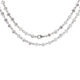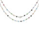 A delicate beaded chain with aqua-colored iridescent beads and silver detailing