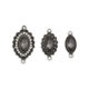 2 charms: One rhinestone sunburst with a dark antique silver finish, and one emblem with a lighter antique silver finish and dark rhinestones. Both include jump rings.